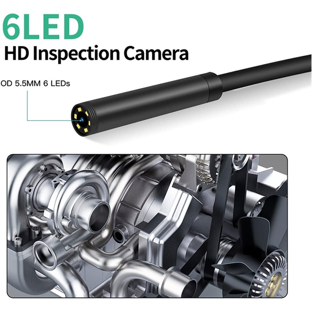 .كاميرا OD: 5.5 ممالبكسل: 1.0 ميجابيكسلالبعد البؤري الفعال: 3 ~ 10 سمنوع البطارية: 4 بطاريات AA شاشة LCD: 2.3 بوصةLED: 6 قابلة للتعديلأبعاد كابل الكاميرا